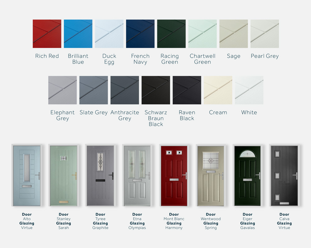 Choose from one of the following top of the range solid composite doors and then select a colour option to qualify for this special price. (This cannot be used in conjunction with our interest free offer)